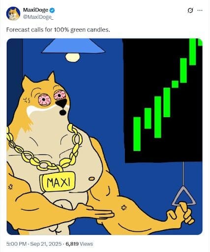 The interest around this project resembles SHIB’s early days, when only a small wave of hype became full-blown madness after the market flipped bullish. Meanwhile, short-term traders are watching DOGE price prediction closely as momentum builds in $MAXI.