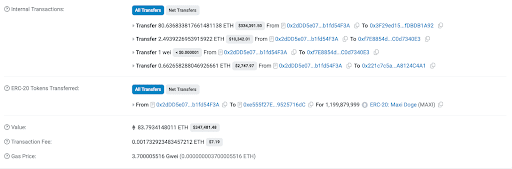 Maxi Doge has jumped from $2.88M to over $3.64M in presale funds within a week. Two consecutive transactions, occurring just seconds apart, have resulted in the purchase of a total of 2.4 billion MAXI tokens. This means approximately 1.19 billion tokens were bought in each transaction, valued at around $347,000 each.
