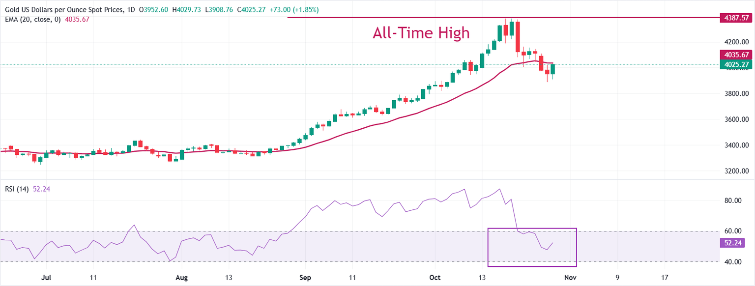 The next trigger for the Gold price will be the meeting between US President Donald Trump and Chinese leader Xi Jinping in South Korea on Thursday. Both leaders are expected to sign the trade deal and discuss various issues such as technology sharing, rare earth exports to Washington, and tariffs.