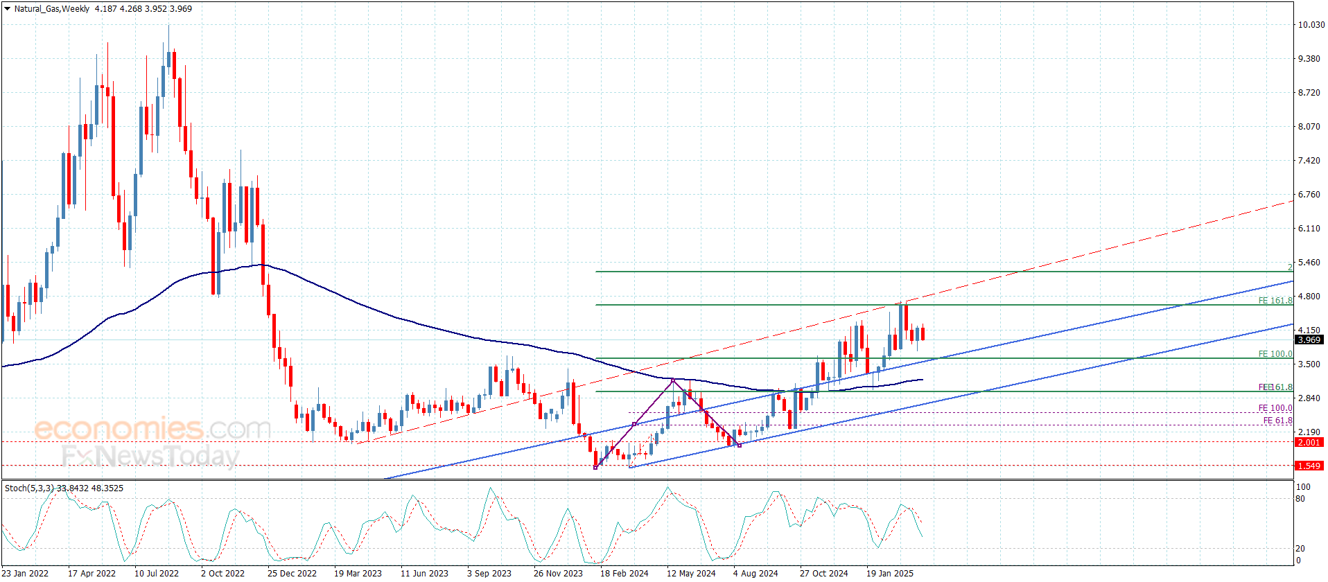 Despite the weakness of latest natural gas trading, as the Stochastic slips below 50, the price is still holding within the ascending channel shown in the attached chart, with $3.750 forming as an important support, reinforcing the upward trend in the short and medium terms.