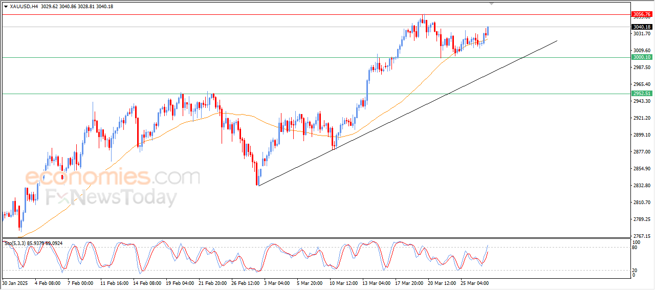 If a correction unfolds, the immediate support for Gold buyers is at the $3,050 psychological barrier, below which the March 26 low of $3,012 could be tested.