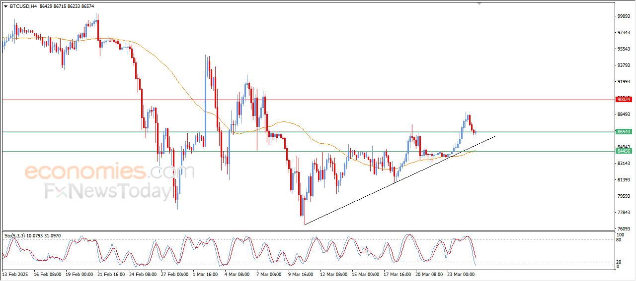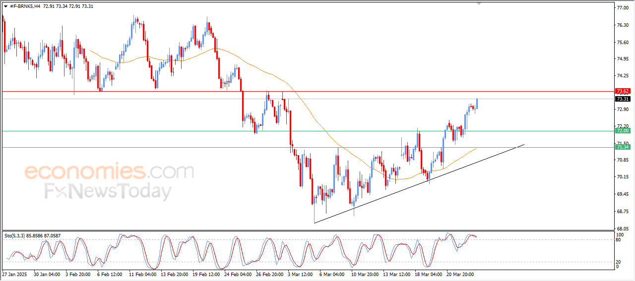 US crude oil prices kept rising in intraday trading, amid the dominance of the upward correctional trend in the short term, as the price moves alongside the trend line, with the gains achieved despite a stream of negative signals from the Stochastic, with the price attempting to vent off overbought saturation there.