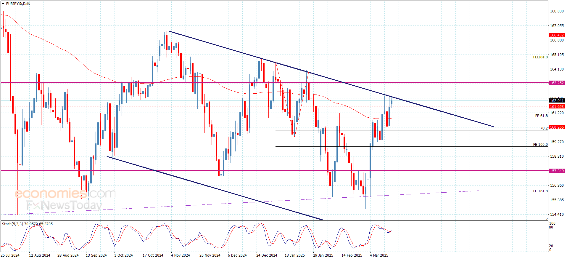 - The pair attempted to recover in recent trading sessions from losses that reached the support level of 146.54, the lowest for the pair in five months.