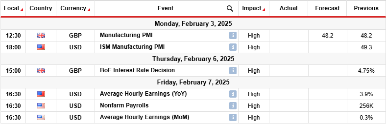 - US President Trump has made good on his threats to impose tariffs on Canada and Mexico and China, with new tariffs taking effect last Saturday of 25% on Canada and Mexico (only 10% on energy imports) and 10% on China. President Trump has also begun to threaten BRICS nations with a 100% tariff if they do not drop plans to create an alternative global reserve currency to the USD.